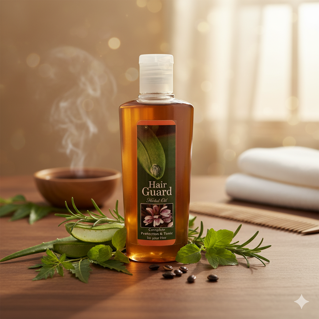 Description: Hair Guard Oil is a specially formulated natural oil designed to improve hair health and combat hair loss. Infused with a unique blend of essential oils and herbal extracts, it nourishes the scalp, strengthens hair follicles, and promotes healthy hair growth. Regular use can help reduce hair thinning, support scalp health, and enhance overall hair vitality.